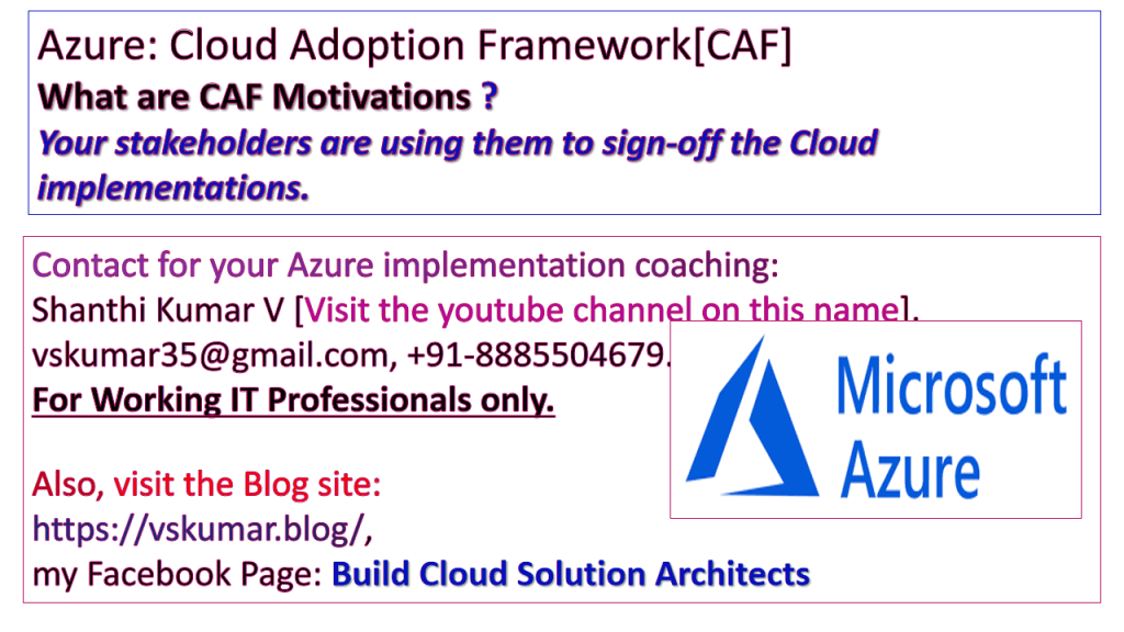 The stakeholders use the CAF motivational factors to evaluate the cloud projects and sign-off. Hence the Cloud Architect need to understand them in detail.