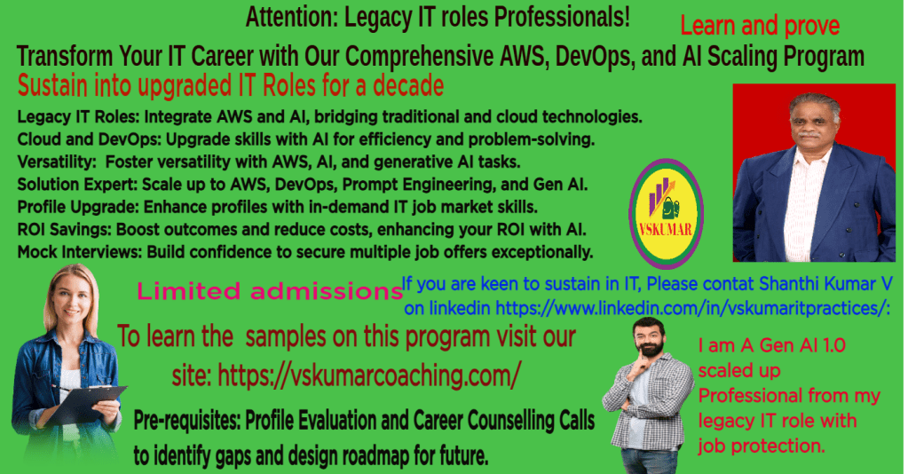 These roles not only demand a combination of technical skills but also practical experience and strategic thinking, all of which are cultivated through the courses offered by VSKUMARCOACHING. Embrace the opportunity to elevate your career and become a sought-after professional in the cloud and machine learning arenas. Your journey begins today!