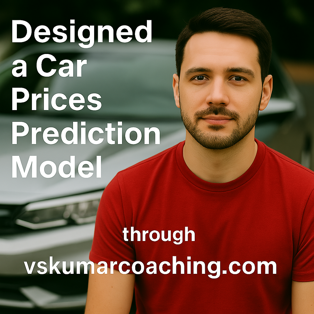 In this blog you will see the end to end demos of Car prices prediction ML Model plan/design/development activities by our coaching participant: