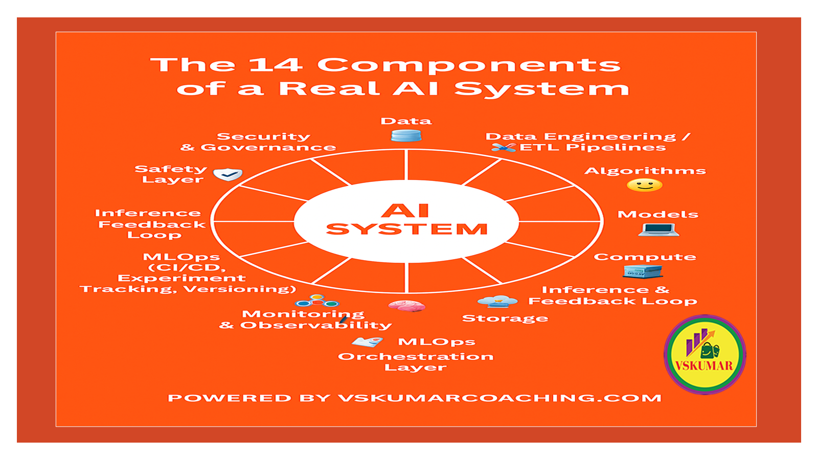 A production-grade AI system requires multiple interconnected layers—not just models and datasets. Below are the essential components, their purpose, typical tools used, and real-world use cases.